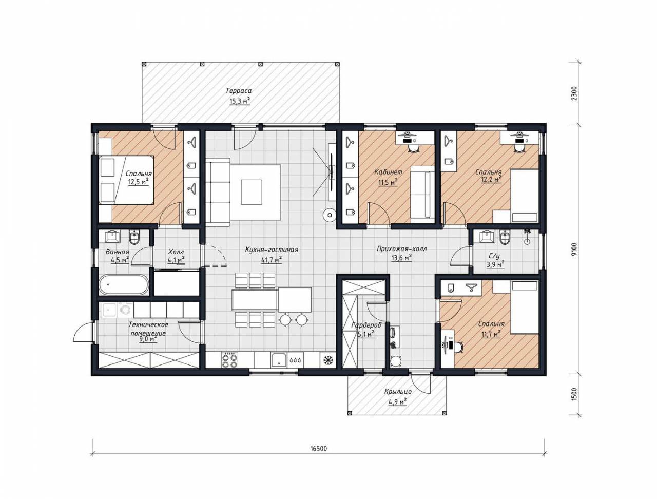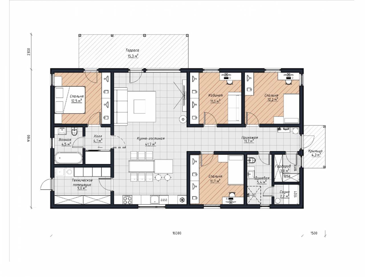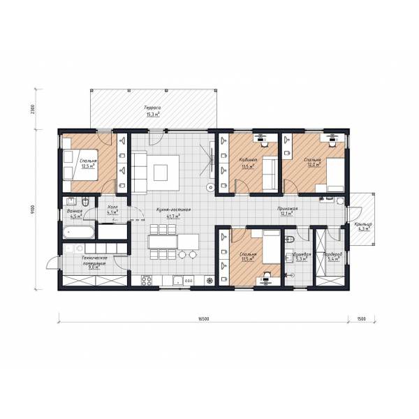 - Prefab энергоэффективные стеновые панели высокой заводской готовности из сухой, строганой, калиброванной доски с противопожарной фаской. Общее утепление 225мм с перекрытием мостиков холода (UMATEXTermo 200мм + звукоизоляционная плита Beltermo 25мм)