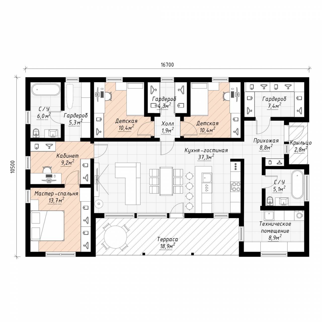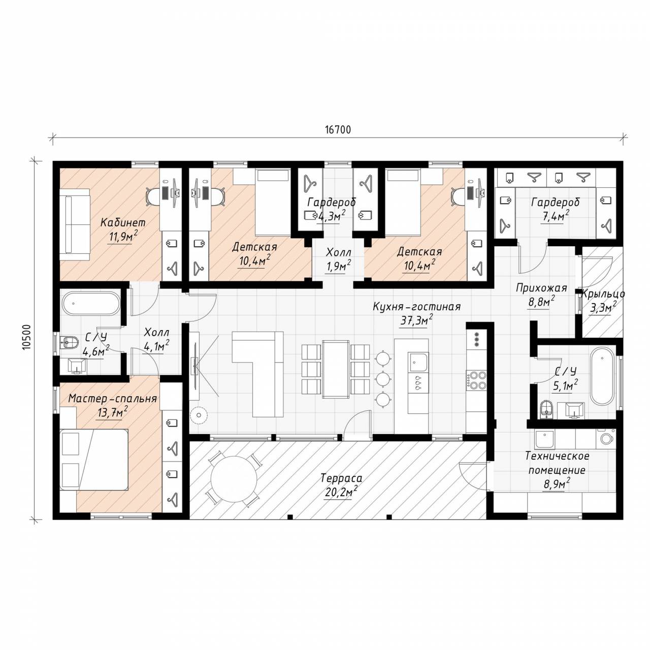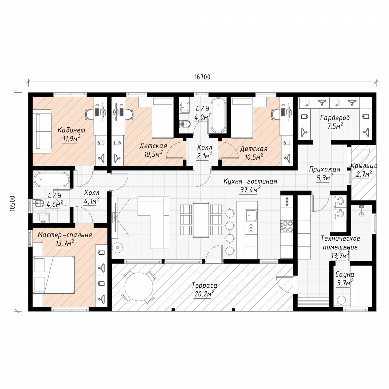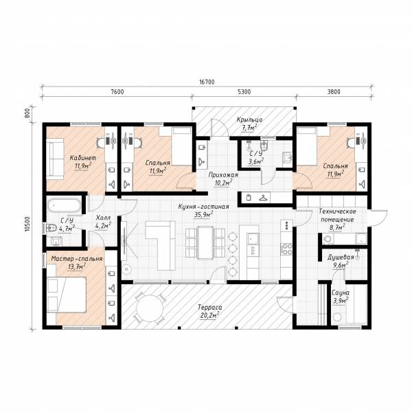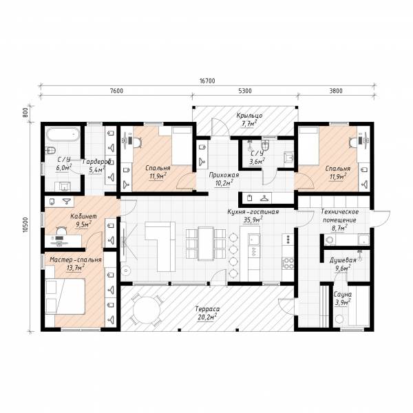 • Несущие силовые элементы - балки и столбы - клеёный брус и/или LVL-брус