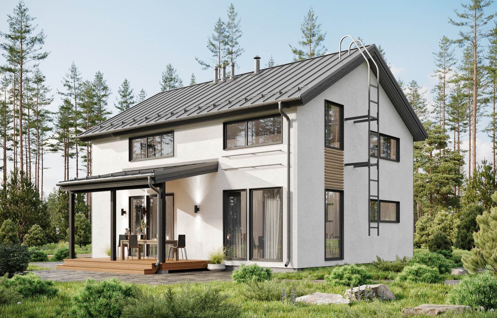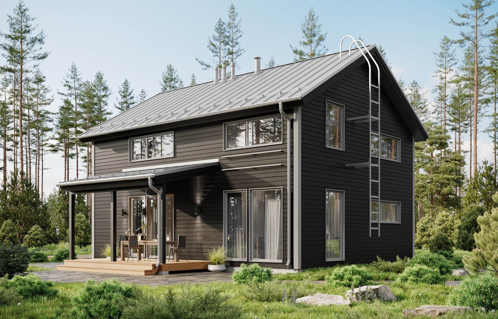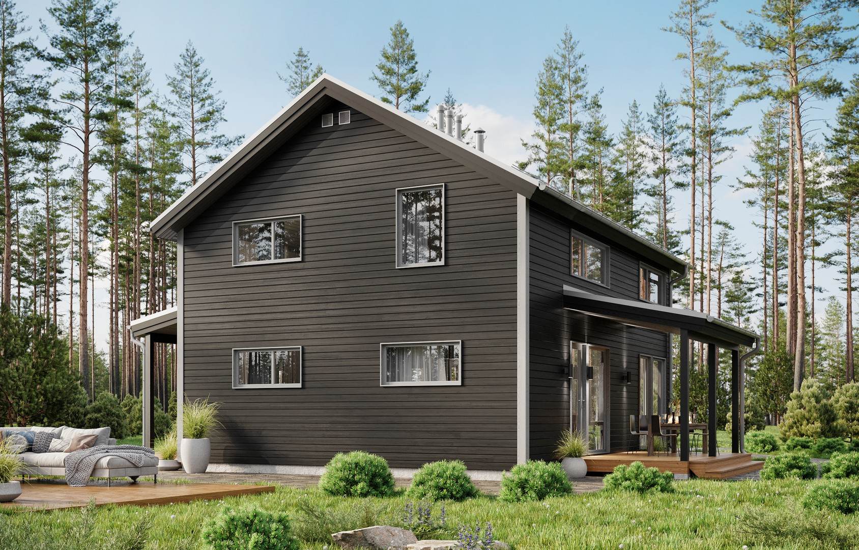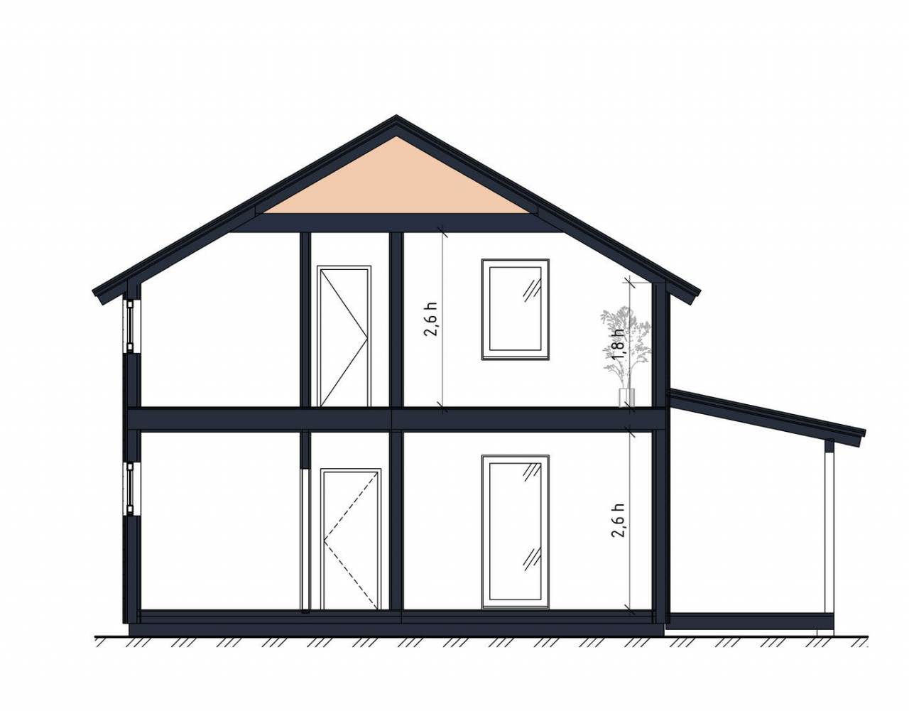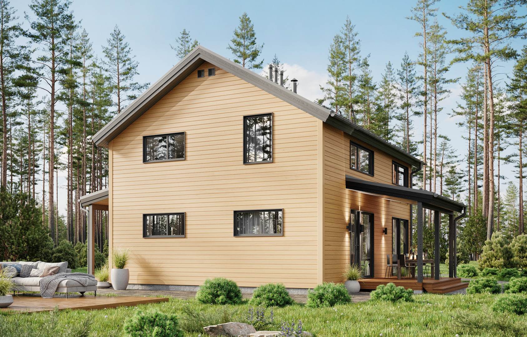 - Prefab энергоэффективные стеновые панели высокой заводской готовности из сухой, строганой, калиброванной доски с противопожарной фаской. Общее утепление 225мм с перекрытием мостиков холода (UMATEXTermo 200мм + звукоизоляционная плита Beltermo 25мм)